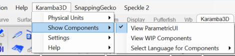 <figure><img src="https://2671626451-files.gitbook.io/~/files/v0/b/gitbook-x-prod.appspot.com/o/spaces%2F6rkhS8IteqWJRfUuJlL5%2Fuploads%2FPVZUO0AN9IdsWBkYYIHn%2FK3DToolbar.png?alt=media&#x26;token=1b41acfd-c873-4b14-a5ef-eb8779612abc" alt=""><figcaption><p>Fig. 2.1: Category “Karamba3D” on the component panel</p></figcaption></figure>