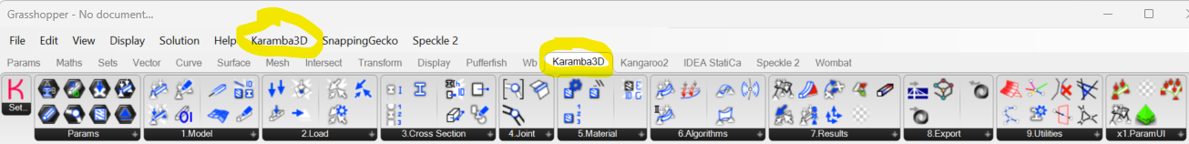 Karamba3D adds a section in the Grasshopper menu (see fig. 2.2.). There it is possible to